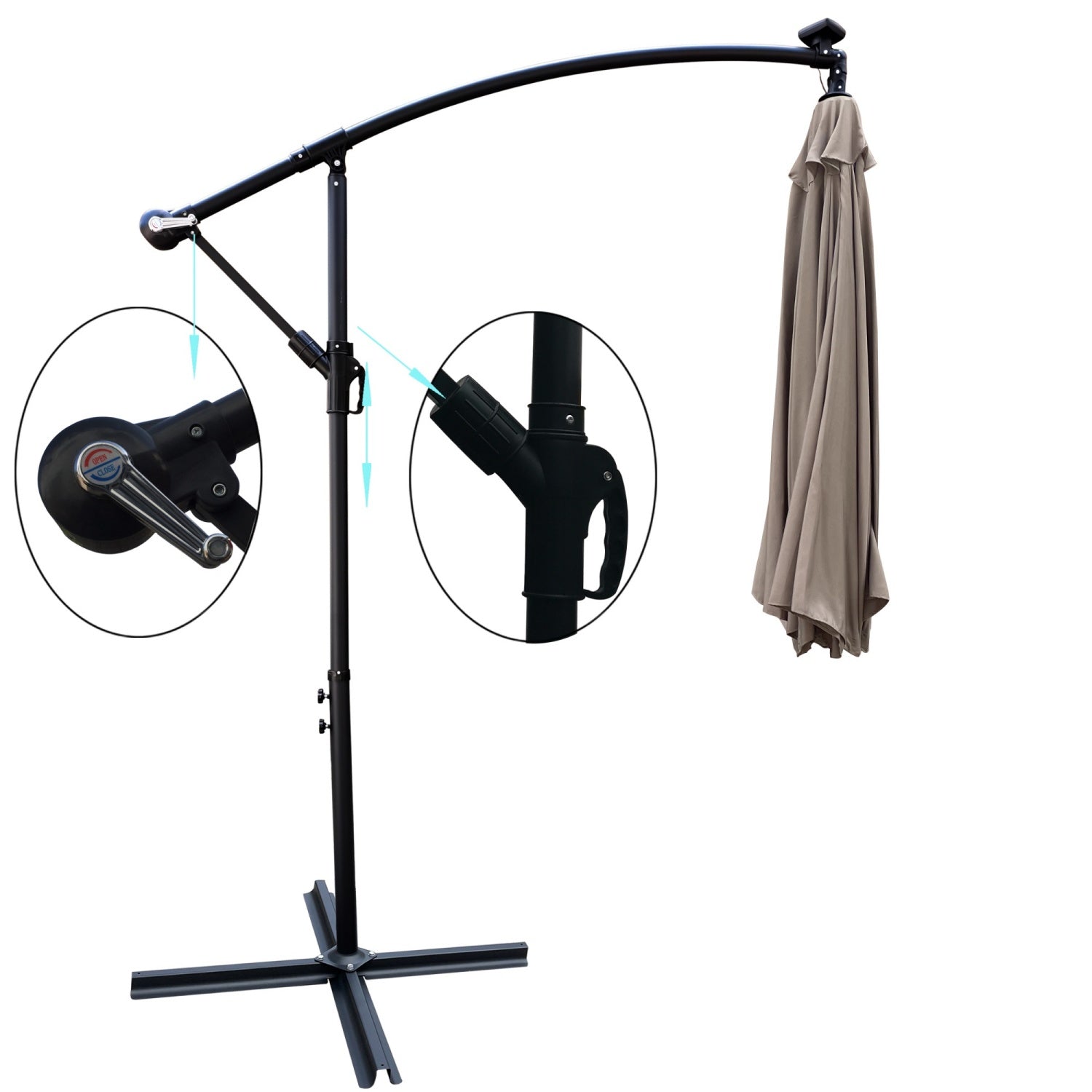Counterweight Required: This umbrella includes a cross base but requires additional counterweights (recommended 132 lbs/60kg) for stability.