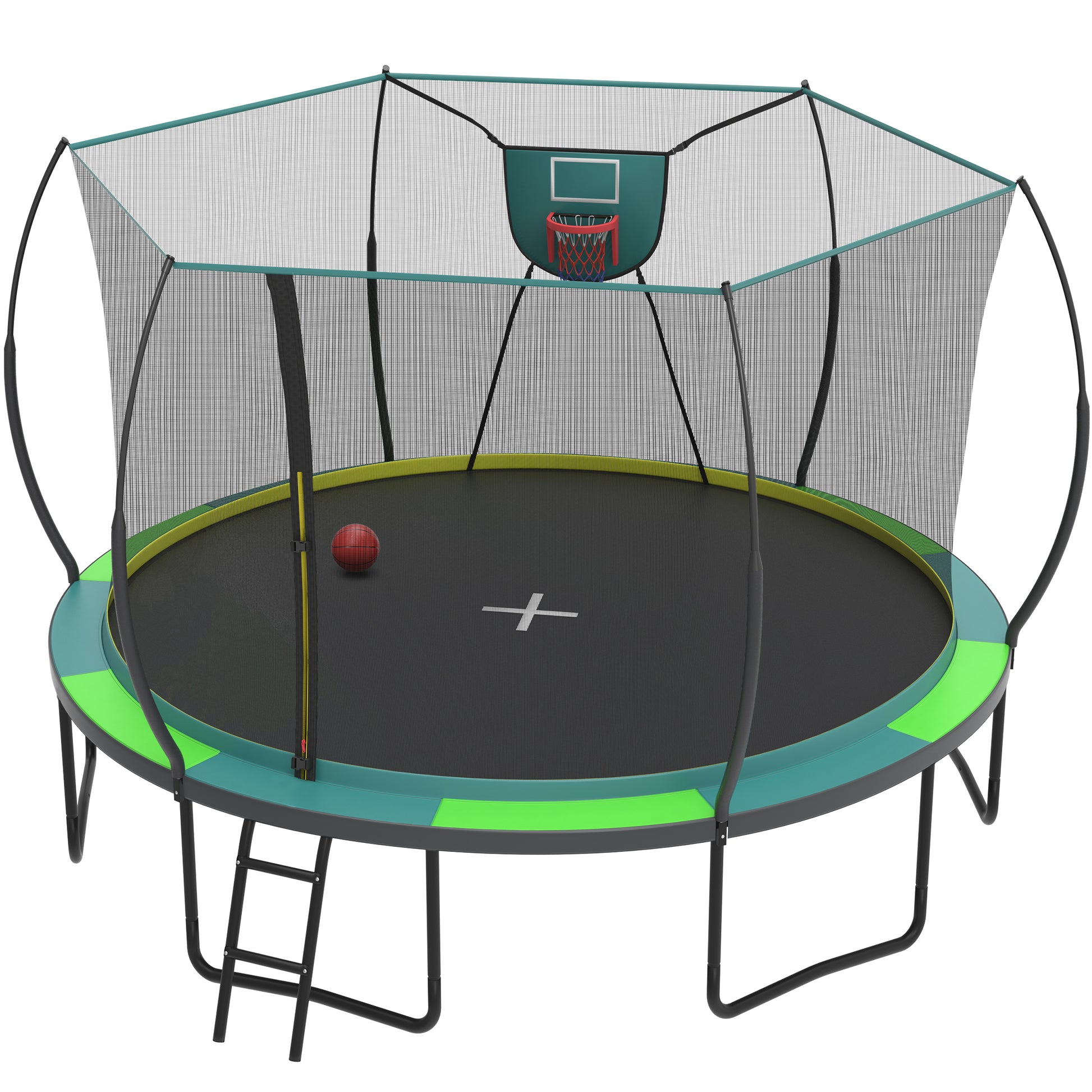 14FT Trampoline for Kids with Basketball Hoop, SHINPT Toddler Trampoline for Backyard, Patio, Indoor Trampoline with Enclosure Net, Adult Trampoline with No-gap Design, Outside Toy for Kids for Gift