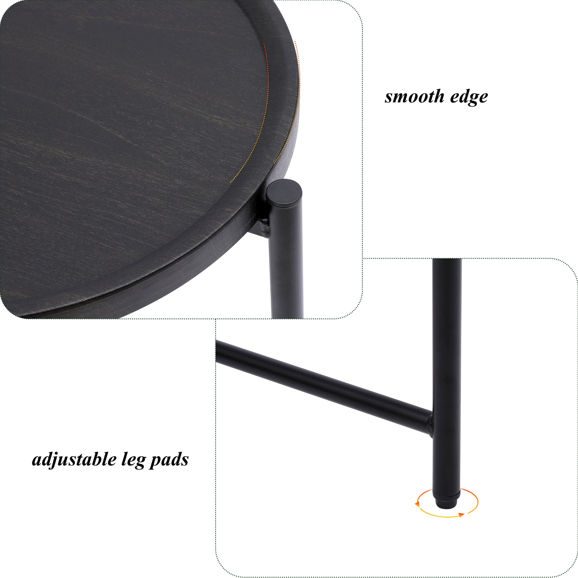 🛋【4 Adjustable Leg Pads】 SHINPT couch side table is built with thickened powder-coated metal and high-quality MDF (22lbs per tray capacity). Adjustable pads protect floors from scratches and stabilize the table on uneven surfaces.