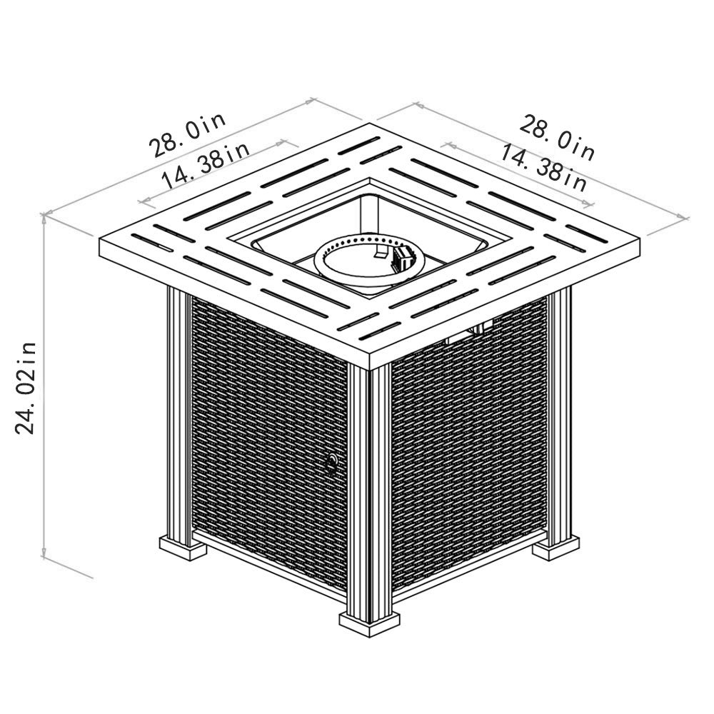 28" Propane Fire Pit Table, SHINPT Outdoor Gas Fire Pit Table, 50000 BTU Square Steel Fire Pit with Beautiful Wicker Base, Gas Fireplace for Garden, Patio, Yard, Backyard, Add Warmth to Parties