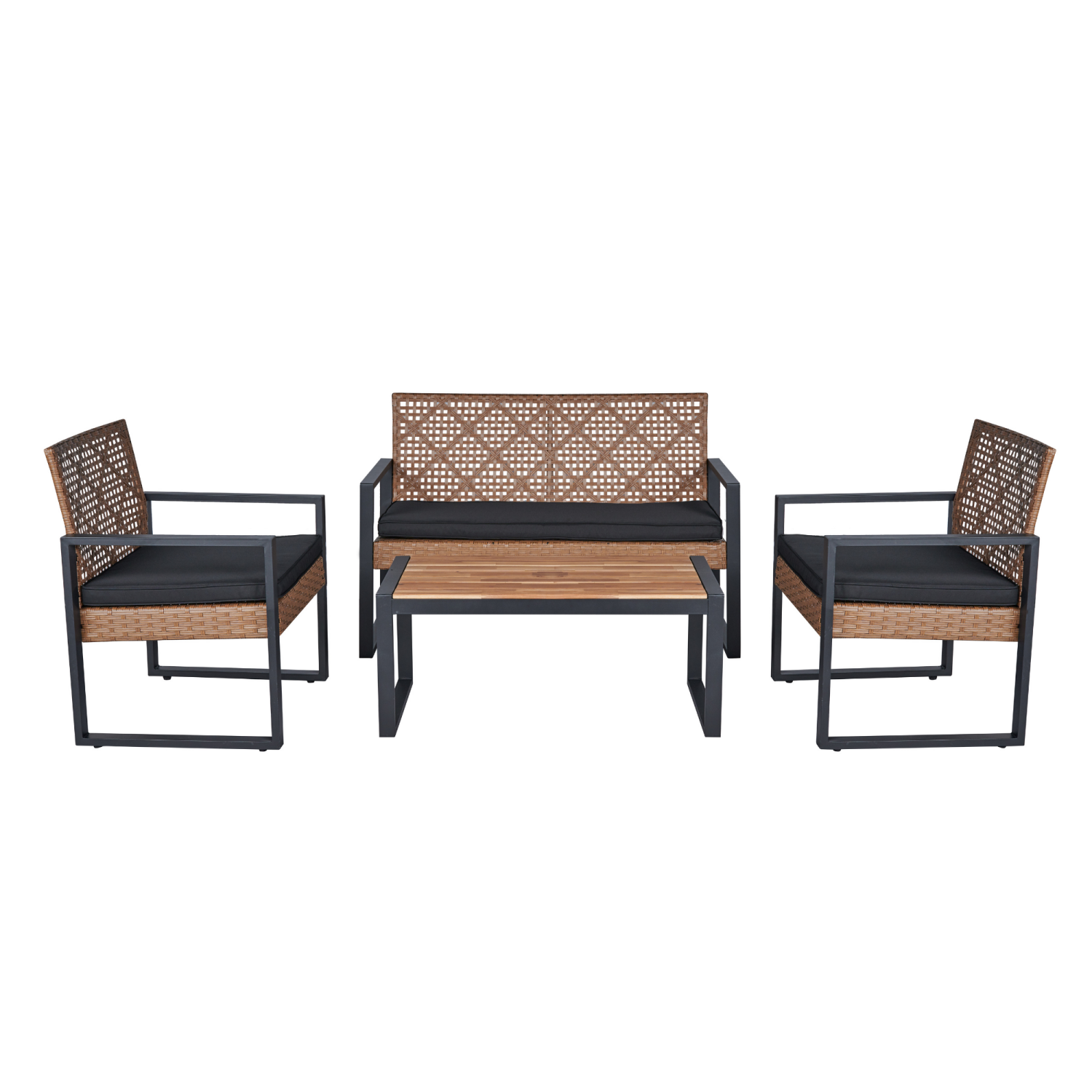 <p><b><br>✨Specifications:</b><br><b>Main Color: </b>Light Brown<br><b>Intended Use: </b>Garden & Outdoor<br><b>Materials:</b> PE rattan weave<br><b>Seating Capacity: </b>Seats 4 <br><b>Assembled Dimensions:</b>104.00" × 58.84" × 29.92"<br><b>Double Chair : </b>44.00" × 23.82" × 29.92"<br><b>Single Chairs :</b> 23.82" × 23.22" × 29.92"<br><b>Coffee Table : </b>33.07" × 17.51" × 15.16"<br><b>Product Weight: </b>63.93 lbs<br><span style="color: rgb(51, 51, 51); font-size: 16px;"><b>Weight Capacity: </b>Double chair: 705 lbs ;Single chair: 363 lbs</span></p>