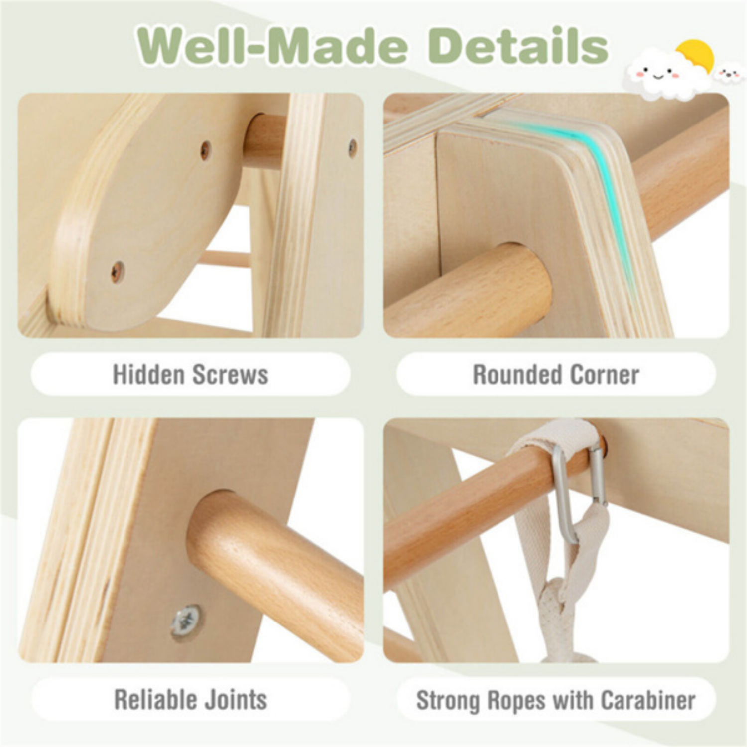 <p><br>❤️Child-safe Design:Our Toddlers Triangle Climbing Toys Set with all surfaces are finely sanded with no burrs, and all connections use hidden screws to prevent scratches, ensuring safe play even for younger toddlers.</p>