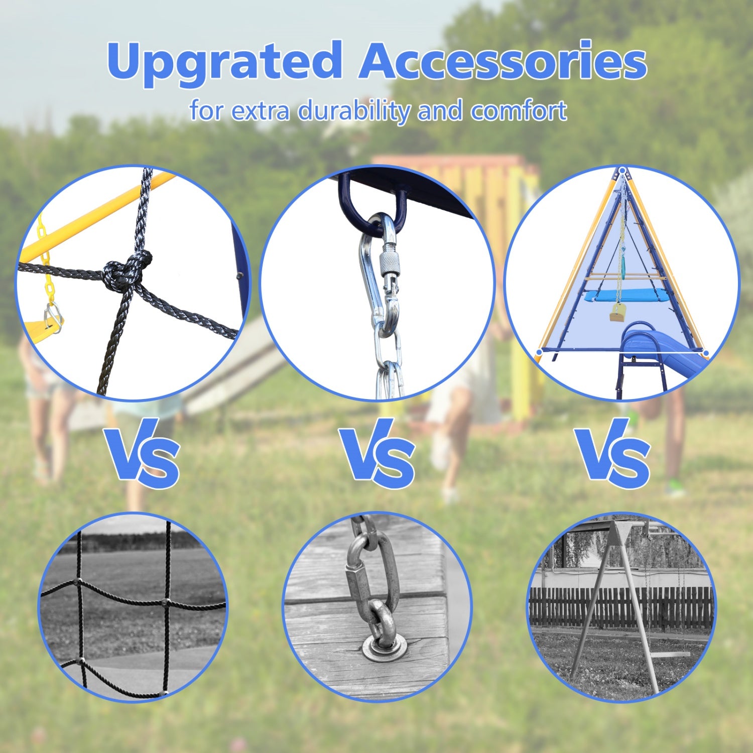 <p><b>🧩 360 Degree Safety Design:</b><br>Backyard Playground Set Swing Chain Outset Soft Rubber Grips with Thickened Boarding Rope and High Duty Climbing Ladder Fasteners effectively prevent pinching and slipping, reducing the risk of injury.</p>