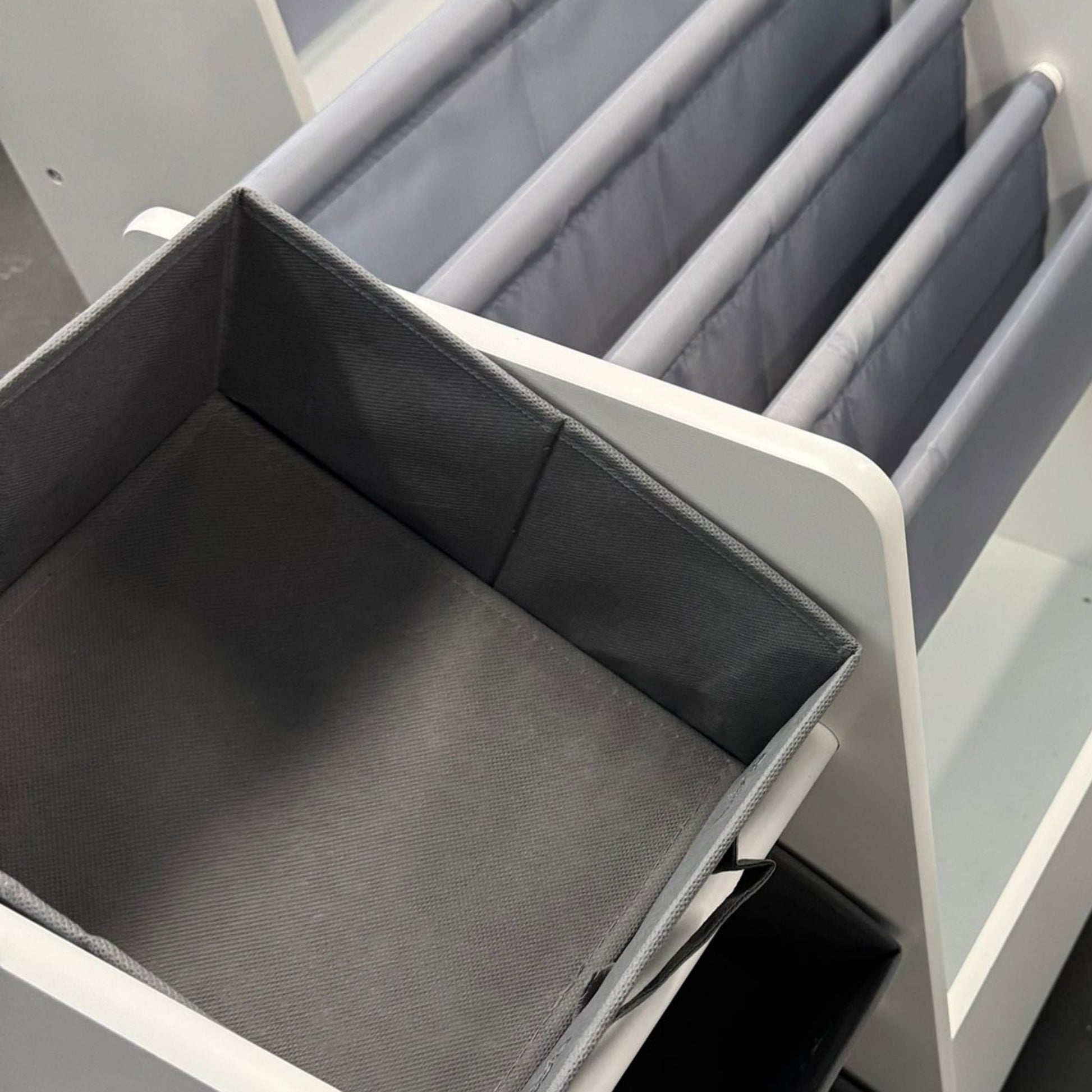 📖【Partition organization design】This bookshelf with storage function adopts a scientific design of dual functional areas on both sides, which clearly separates storage and display needs. There are three fabric drawers on the left side, which can accommodate small toys such as building blocks and puzzle parts, effectively avoiding the mixing and stacking of scattered items. On the right side, there is a bookshelf made of four layers of polyester fiber fabric material, with layer spacing suitable for children's book sizes. When books are placed upright, the cover is clearly visible facing outward, allowing children to quickly view and find the books they want.