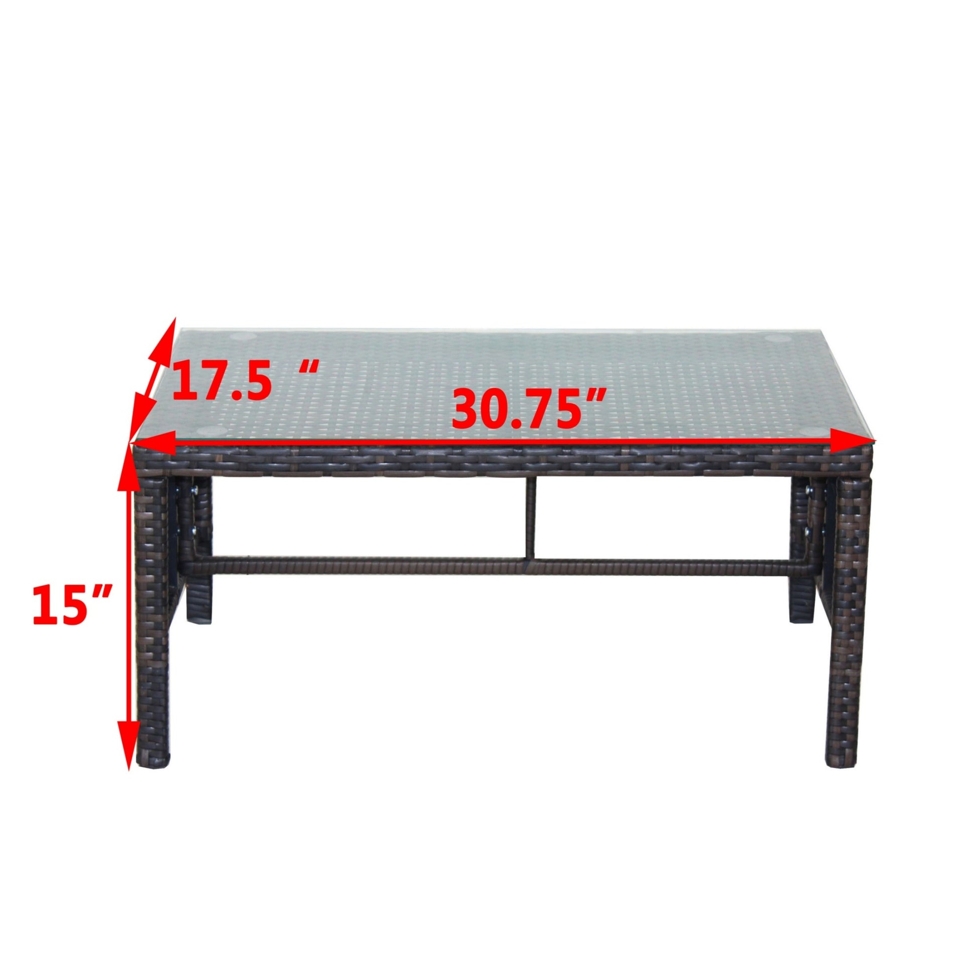 Outdoor Coffee Table for Patio, SHINPT Wicker Side Table, Rattan Coffee Table with Clear Tempered Glass, Glass Side Table for Backyard, Lawn, Outdoor Side Table for Yard, Patio, Garden