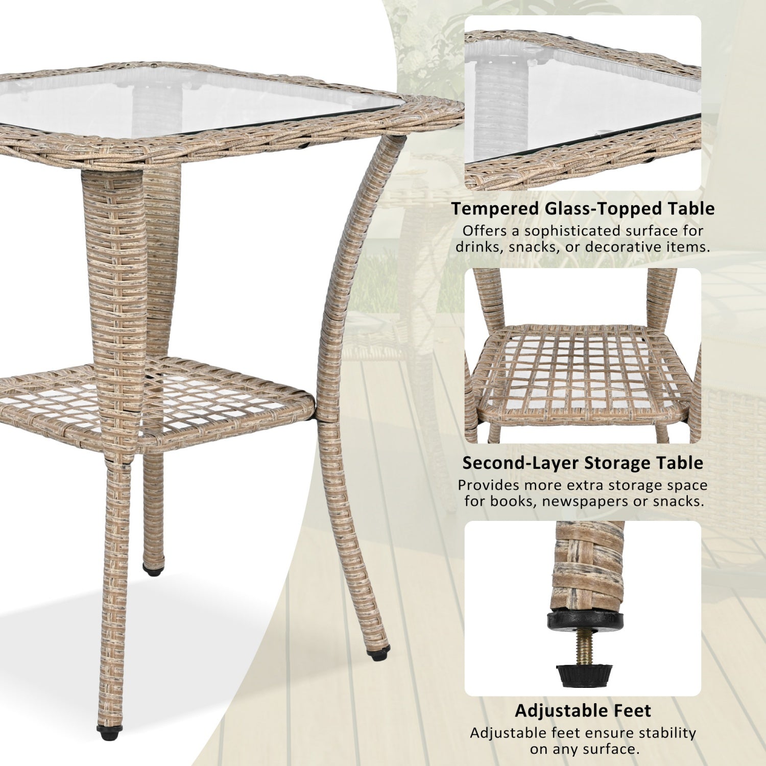 <p><b>⭐20.3" x 20.3" Space-Smart Design:</b>Our Porch Rocking Chairs Set has an elegant square table that features a 20.3-inch tempered glass top and a lower shelf for extra storage, perfect for keeping books, snacks, or decor within reach.</p>