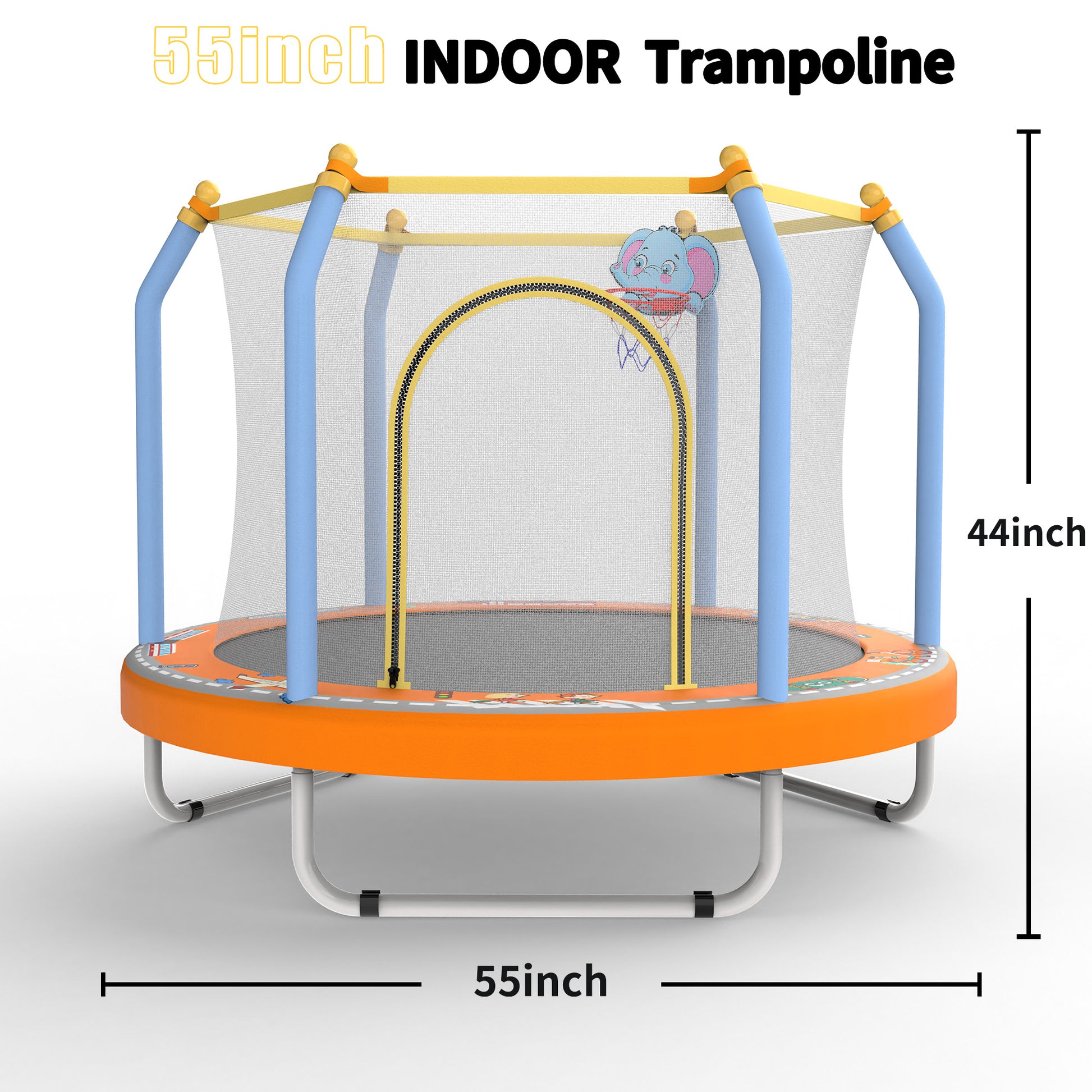SHINPT 55" Kids Trampoline for Kids Age2-8, Indoor/Outdoor Toddler Trampoline Featuring Safety Handle, Easy Assembly, Entertainment Trampoline Basketball Hoop for Backyard, Patio