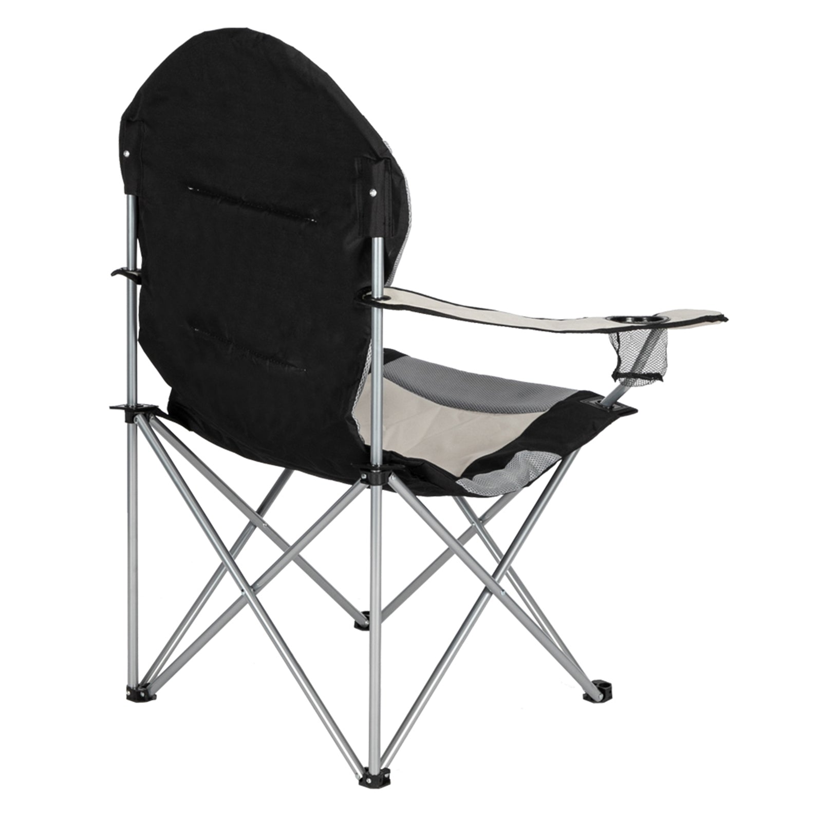 SHINPT Medium Camping Chair with Cooling Mesh Back Support 300 LBS, Portable Folding Chair with Durable Armrests and Drink Holder for Outside Beach,Lawn,Fishing, Black Gray