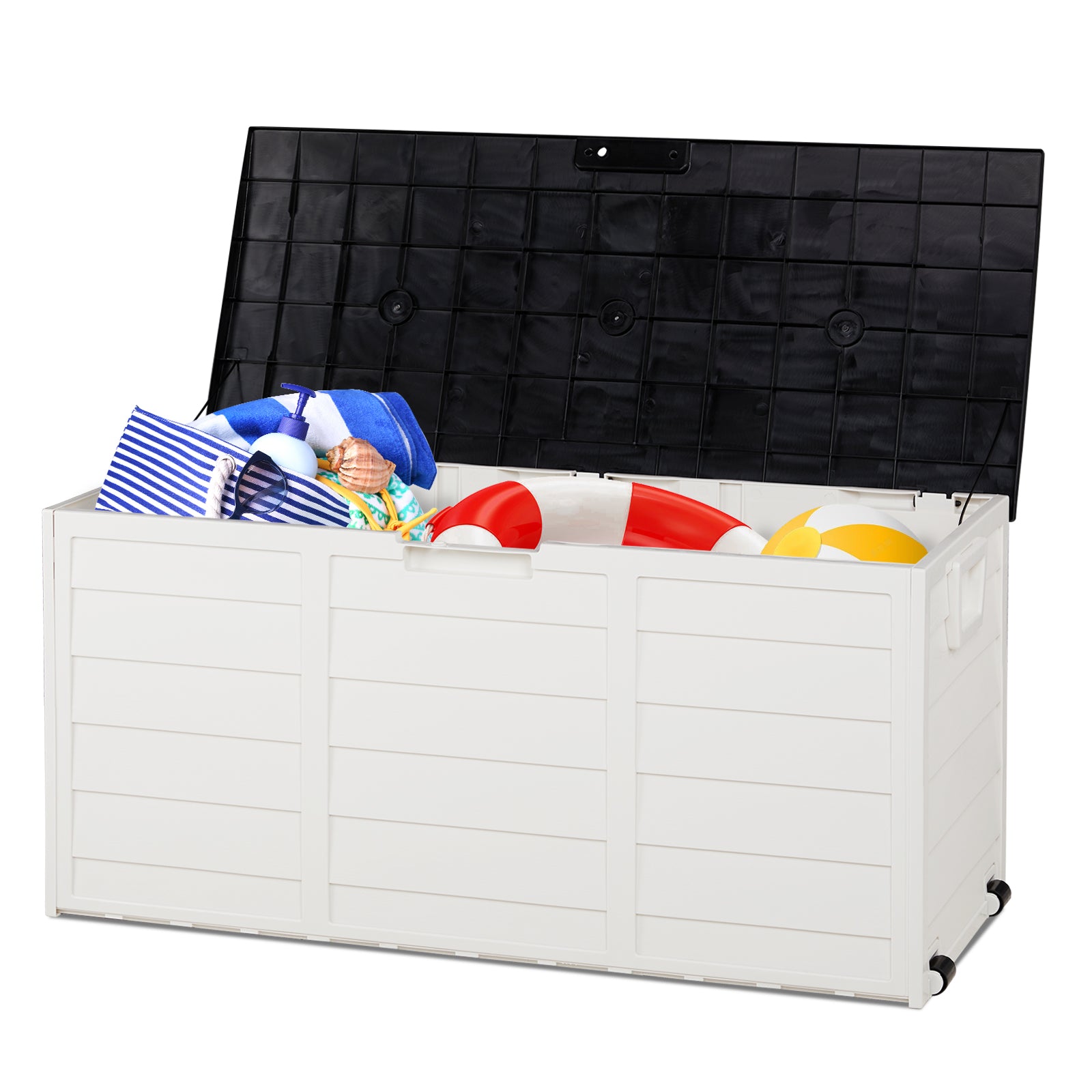• Durable and Weather-Resistant - The SHINPT Outdoor Garden Plastic Storage Deck Box is constructed from hard-wearing, durable plastic that is water-resistant, weatherproof, and UV resistant, ensuring your items stay safe and dry.
